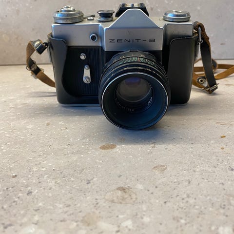 Sjælden Sovjetisk Leica-kopi-filmkamera FED-2 i perfekt stand. Tager de smukkeste billeder – næsten som et ægte Leica. Minolta Super Rokkor-linsen har Leica-mount.