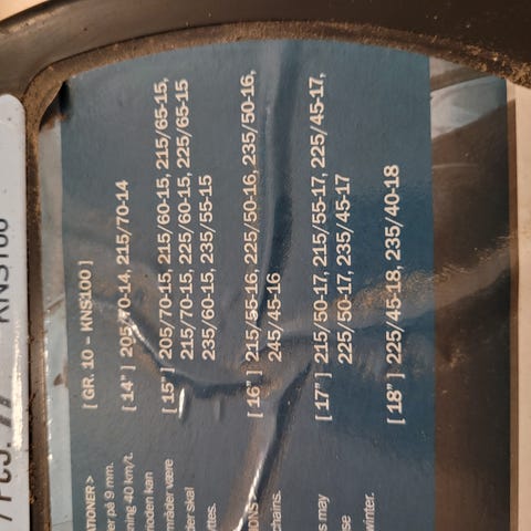 Snekæder, 2 sæt til hhv. dækstørrelse fra 205x14 (se billede) og til dækstørrelse omkring 165x14