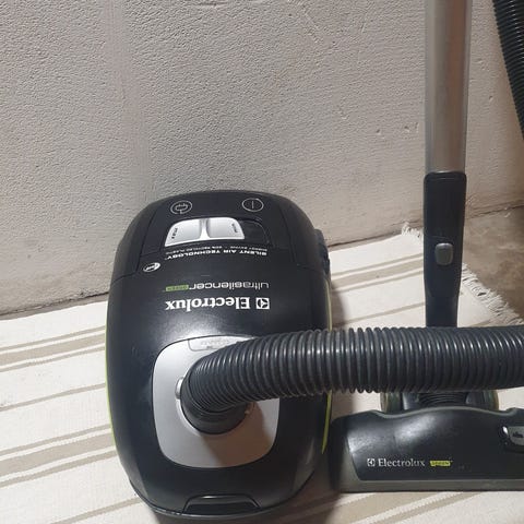 Med fjernbetjening,indbygget lys i gulvmundstykke, vedligeholdt,virker som den skal,en helt ny pose i