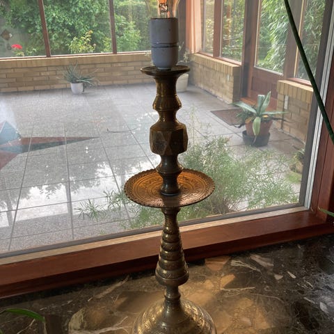 Elegant og velproportioneret bordlampe i massiv messing fra ca. 1960–70. Slank, klassisk form med smuk naturlig patina og god tyngde (870 g). Alt elektrisk er udskiftet – ny fatning, ny ledning og ny afbryder. Klar til brug. Lampen sælges uden skærm, så du frit kan vælge form og udtryk, der passer til dit interiør. En solid og tidløs lampebase i ægte vintagekvalitet.