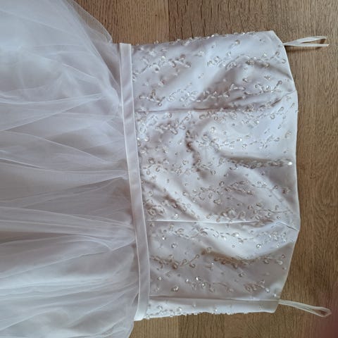 Fin og enkel nederdel med lille blonde forneden. Str 40. Lynlås bagpå. Man kan sætte forskellige toppe til. Kun fantasien sætter grænser.