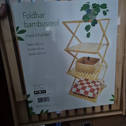 Reol m. hvide hylder og bambus stiger