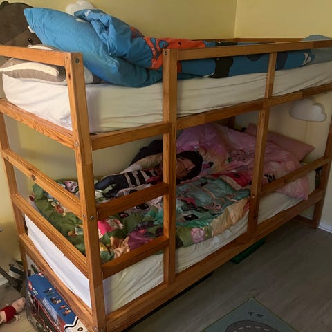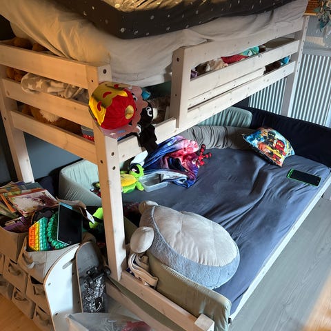 Køjeseng i træ, velegnet til børneværelse med to sovepladser placeret over hinanden. Sengen giver ekstra gulvplads i rummet og kan bruges til søskende eller som ekstra soveplads til overnattende gæster.