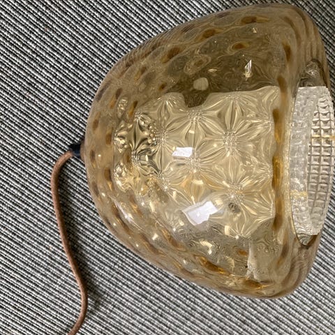 Lampen har en smuk boblestruktur i klart presset glas og messingtop, som giver et eksklusivt retro/hollywood-regency look. Den er meget tung og i høj kvalitet.