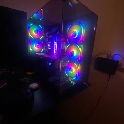 Gamer computer med AMD Ryzen7 CPU og RTX Grafikkort.
