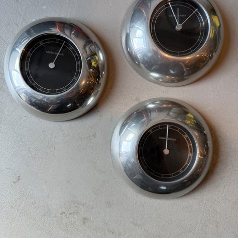 Analog vejrstation bestående af tre runde målere i sort. Sættet omfatter sandsynligvis termometer, hygrometer og barometer til måling af temperatur, luftfugtighed og lufttryk indendørs. Enhederne har sort front med hvide visere og talmarkeringer. Velegnet til montering på væg eller placering på hylde i hjem eller sommerhus for enkel overvågning af indeklima og vejrsituation.