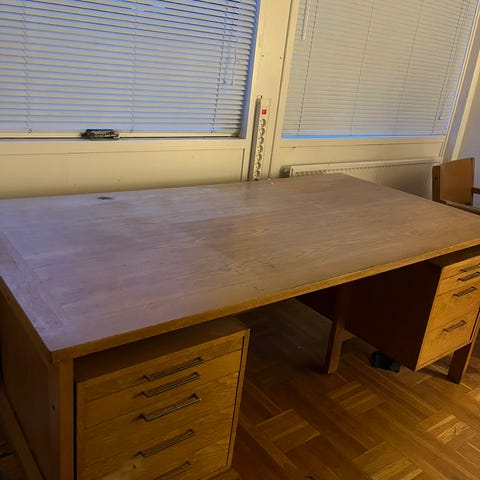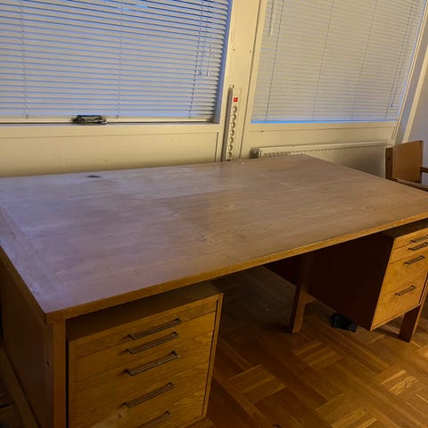 Øverste skuffe har løs hylde til blyanter og nips der kan flyttes rundt.
