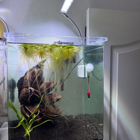 Fint med små nanofisk, kampfisk, snegle og rejer.