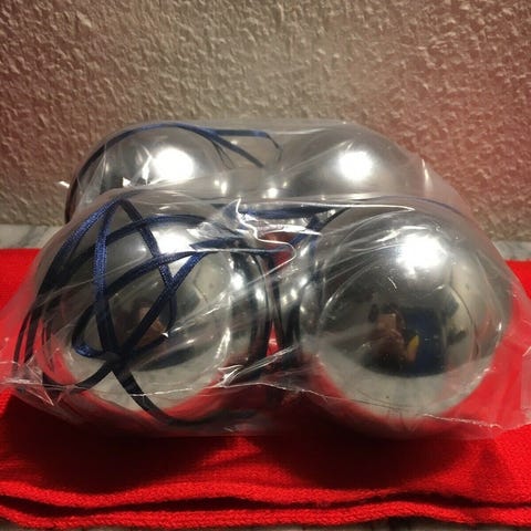 10 julekugler i sølv og blå