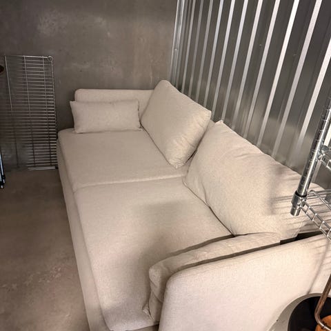 Vi mangler lidt plads og skal derfor af med “noget” af vores sofa. Trænger helt sikkert til nyt stof, som man kan købe på Ikeas hjemmeside, deraf prisen. Uden stof fejler de intet.