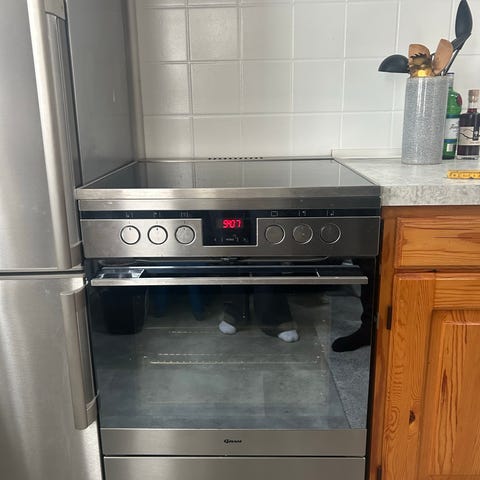 Energiklasse A, ovn volumen på 65 l med touch timer og indbygget stegetermometer (selve termometeret er blevet væk men kan købes på nettet).