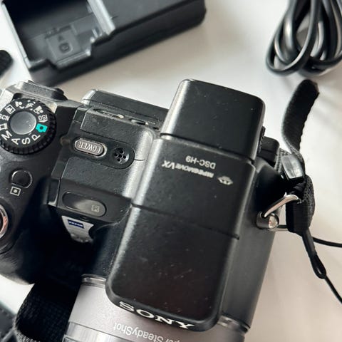 Ældre sony DSC-H20 kamera med Batteri og oplader.