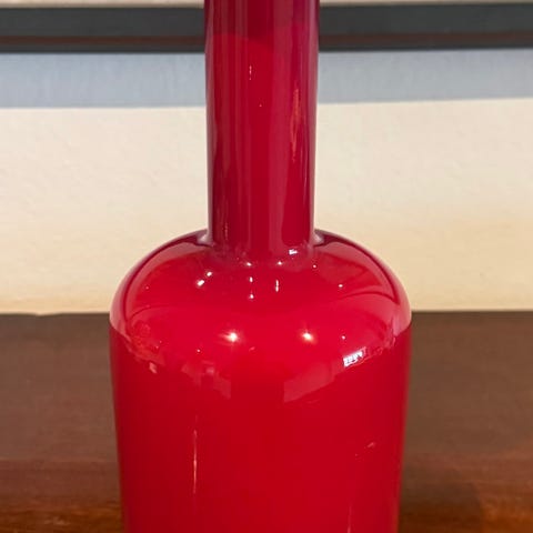 Holmegaard base af Otto Brauer i mørk rød og hvid opaque indvendig.