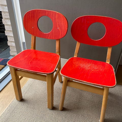 Fire Hukit børnestole. De er brugte, men ellers i orden. Sælges evt. stykvis til 250 kr pr stol