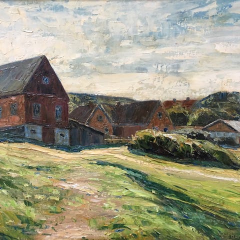 Arthur Nielsen maleri landskab med sø i guldramme
