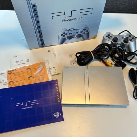 Sælger den her PS2 Fat i sølvudgave. Der medfølger 2 controllere og 2 8mb memory cards. Controllerne ser fine ud kosmetisk men der er 2 ridser på selve konsollen. Ridserne er markeret på sidste billede. Bud modtages