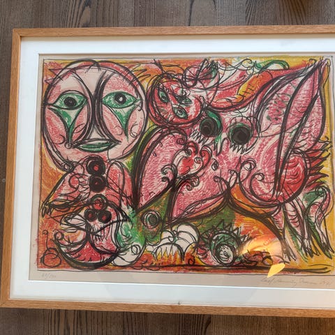 Signeret litografi af cobra kunstnere Carl Henning Pedersen.