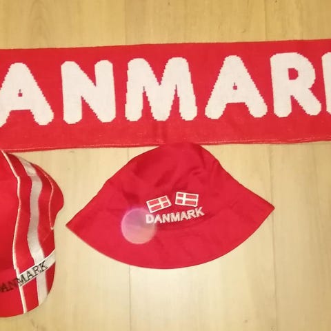3 NYE FLOTTE DANMARK FANARTIKLER. SUPER FLOT HALSTØRKLÆDE 25 CM BREDT, 155 CM LANGT. CAP MED FLOT STORT BRODERI, ONESIZE JUSTERBAR. BØLLEHAT MED DANBROG BRODERIER, ONESIZE. NYE UDEN MÆRKER. TIL DEN STORE FAN AF DET DANSKE FODBOLD LANDSHOLD. NB ER VAREN AKTIV ER VAREN TIL SALG, SENDER GERNE, BETALING INDEN AFSENDELSE, PRISEN ER IKKE TIL FORHANDLING-BUD BESVARES IKKE. SÆLGES IKKE SOM FIKS FÆRDIG.