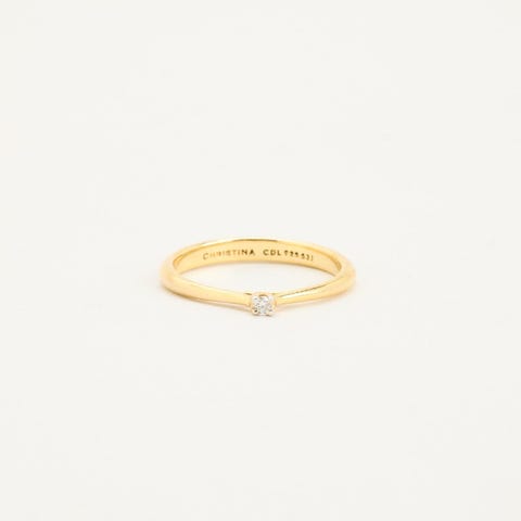 Denne smukke og klassiske ring er 14 kt. guld med en smuk naturlig diamant 0,05 ct i Top Wesselton kvalitet. Størrelse 48. Sælges inkl. smykkecertifikat. Den er købt 9. sept. 2022. Som ny. Ny pris 4.690,00.