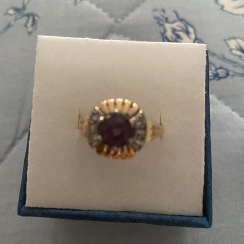 Smuk vintage guld ring 8 karat guld dobbelt mesterstempel Fk Fk. Med 4 grønne Tsavoritter ædelsten. Super god stand