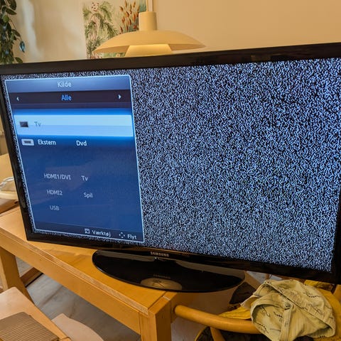 TV'et er 40" og fungerer upåklageligt, inkluderer fod og fjernbetjening - har dog mistet 3D brillerne.