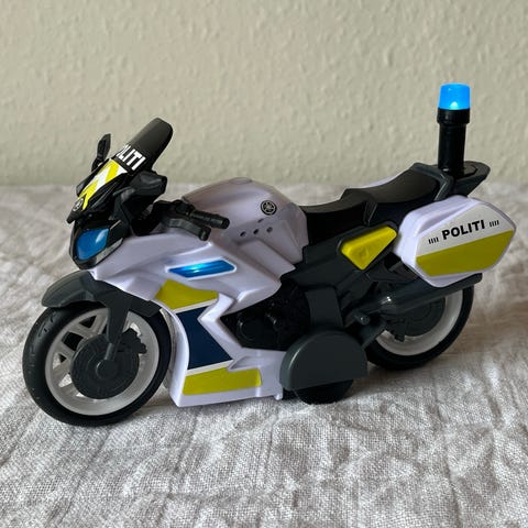 Når man skubber Politibilen fremad så bliver den ved med at køre.