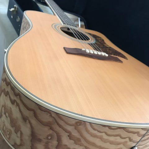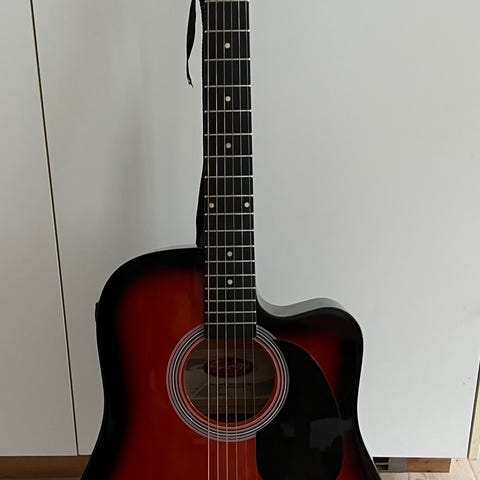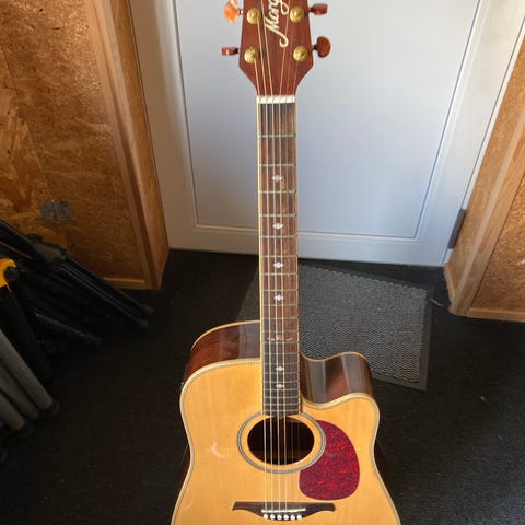 Vellydende og velholdt westernguitar. Med fin lyd og lang klang/sustain, lav strengehøjde på kun 2mm i 12. bånd.