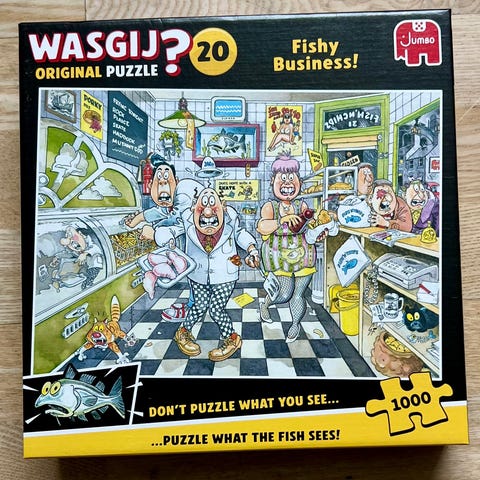 Wasgij Destiny Puzzle 29 Pitch Perfect puslespil med 1000 brikker. Motiv i tegneseriestil med camping- og feriescene. Puslespillet er en del af Wasgij Destiny-serien, hvor det færdige motiv viser en mulig fremtidsscene i forhold til billedet på æsken. Velegnet til voksne og større børn, der kan lide udfordrende puslespil med mange detaljer.