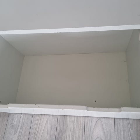 IKEA hvid opbevaringsbænk i enkelt, rektangulært design. Bænken har en stor udtræksskuffe, der giver god plads til opbevaring af fx legetøj, tekstiler eller andre hverdagsting. Overfladen er glat og lys, velegnet som siddeplads eller som lav bordplade i entré, stue eller børneværelse. Fremstillet i hvidt plademateriale med lige kanter og åbning bagtil til kabler eller ventilation.