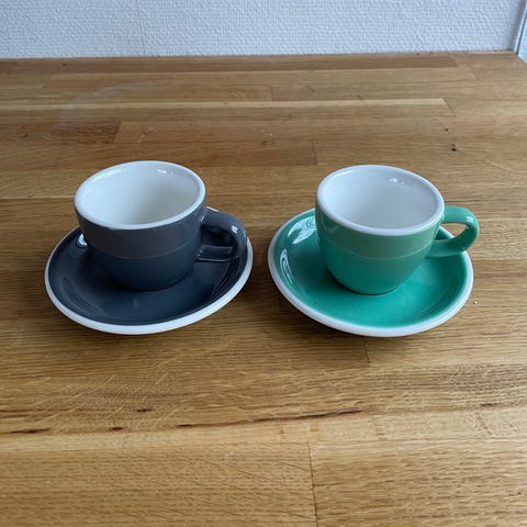 Smukke keramik kopper fra Acme. Perfekt til kaffe. Den ene er mint farvet og den anden cream/hvid. De er stort set ikke brugte.