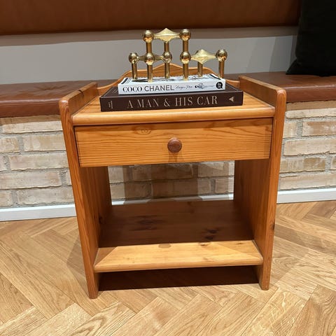 Fint sidebord med skuffe i fyrretræ.