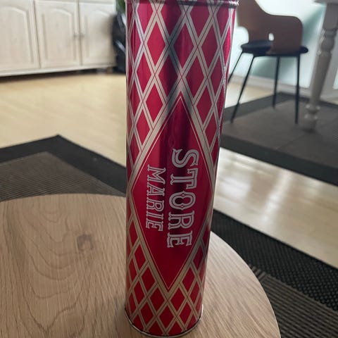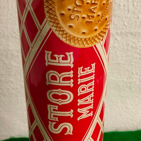 Original retro metaldåse til Store Marie kiks fra Jensen & Mølleras, København.