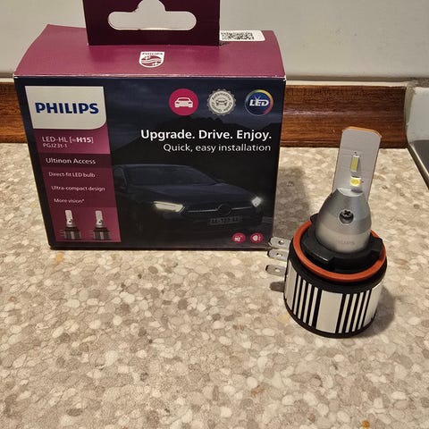 Philips H7 LED pæresæt. Inkl adapter H som passer til Kia Ceed 2012-2018. De er lovlige og kan synes med bilen (efter registrering af konstruktive ændringer)