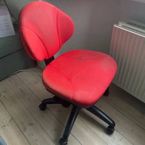 Kompakt og ergonomisk kontorstol med højdejustering og vippeindstilling.