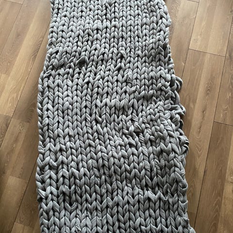 Stort gråt hjemmestrikket plaid af grå flee-tæpper.