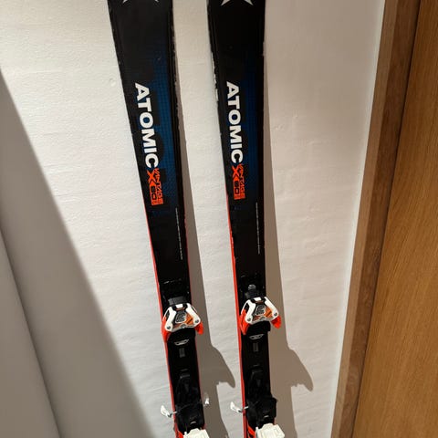 Atomic G9 fis ski i 159 cm med X12 binding. Radius 17,3. Skien er fra 22/23 sæsonen.