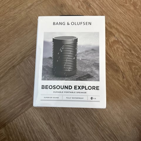 Bang & Olufsen Beosound Explore dust and water resistent i sort. Cylindrisk, kompakt model med integrerede betjeningsknapper på toppen og læderrem på bagsiden til nem transport eller ophæng. Oplades via USB-port i bunden. Velegnet som bærbar højttaler til brug med smartphone, tablet eller computer via Bluetooth-forbindelse.