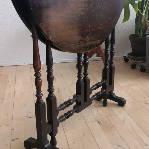 Jeg sælger mit antikke engelske gateleg-bord i massiv eg fra ca. 1920.