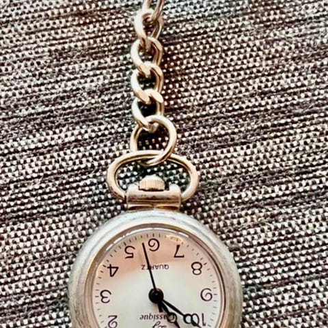 Sælger dette klassiske Inex sygeplejeur, perfekt til uniformen. Uret har vendt urskive, så tiden kan aflæses korrekt, når det hænger nedad – ideelt til sygeplejersker, SOSU’er, læger og studerende. Mangler batteri