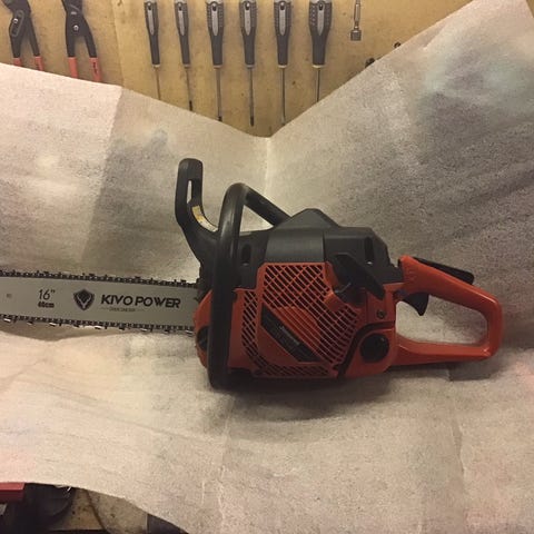 Fin sav, køre godt, monteret med god 15" svær og næsten ny kæde