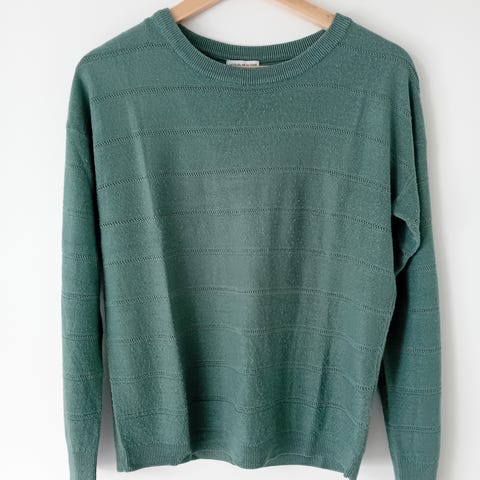 Jacqueline de Yong striktrøje med rullekrave til kvinder i størrelse M. Trøjen er grøn og strikket i akryl. Den har ribstrikket struktur og mellemhøj rullekrave. Ærmer og krop er let boxy i pasformen. Velegnet som hverdagsstrik eller som ekstra lag på kølige dage.