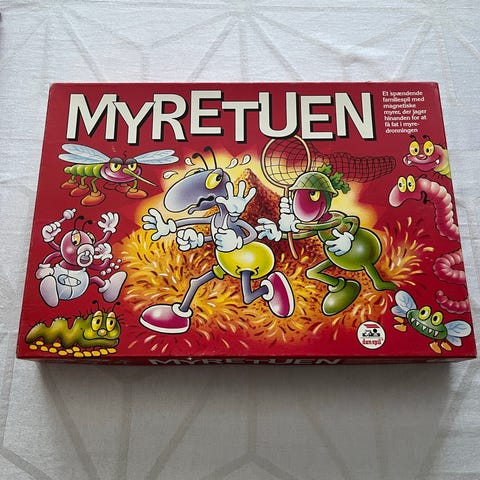 Spillet foregår på en spilleplade, hvor spillerne bevæger sig rundt som myrer. Spillet indeholder spilleplade, terning og brikker/kort som vist på billederne. Reglerne er på dansk, og spillet er egnet til flere spillere. Velegnet som familiespil eller til børnespil, hvor man træner tur-tagning og enkel strategi.