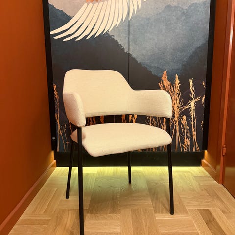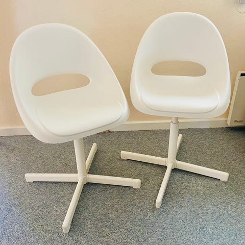 IKEA stol med drejefod hvid med transparent ryg og lys hynde