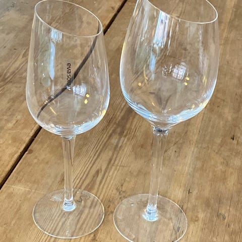 17 stk .Eva Solo vinglas i klart glas. Sættet består af flere vinglas i samme stil med høj stilk og rund fod.