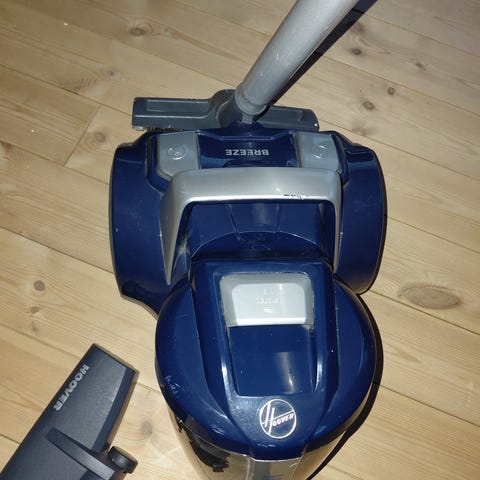 Hoover støvsuger i rød farve. Beholdermodel uden pose med gennemsigtig støvbeholder. Leveres med teleskoprør, fleksibel slange og flere mundstykker, herunder gulvmundstykke og smalt mundstykke til kanter og hjørner. Velegnet til almindelig rengøring af gulve og andre overflader i hjemmet.