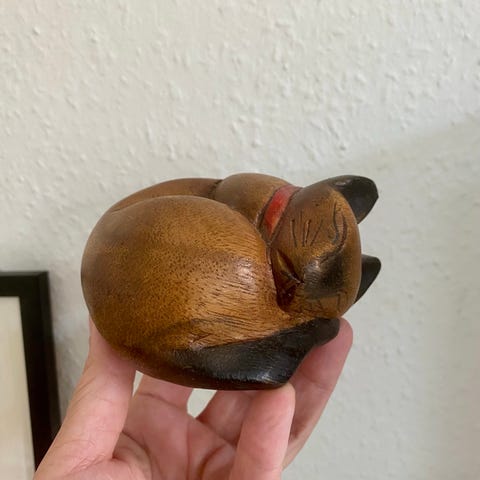 Træfigur kat, Made in Italy, Mørk træ kat, lidt ridser bag det ene øre. 6,5 cm høj og 21,5 x 15 cm