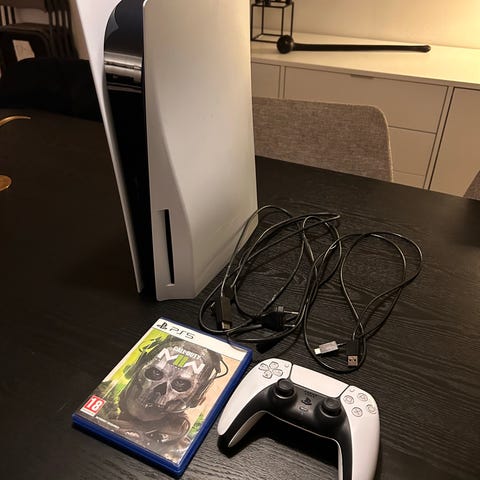 Pakken indeholder en PlayStation 5 konsol med tilhørende DualSense trådløs controller. Der medfølger kabler til strøm og tilslutning til tv/skærm samt spil God of War Ragnarök. Konsollen er egnet til spil, streaming og generel underholdning og understøtter PS5-spil samt udvalgte PS4-titler afhængigt af kompatibilitet.