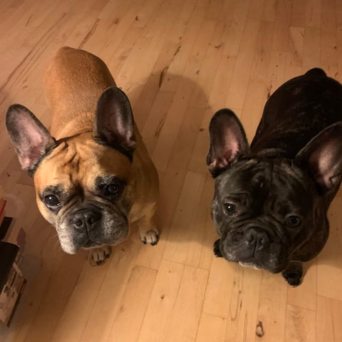 Mor er ren fransk bulldog med stamtavle . Far en toy puddel med stamtavle