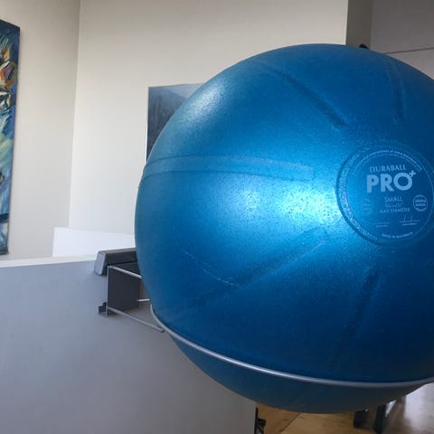 Dura-Ball Pro Pilates/træningsbold med en maksimal oppustet diameter på 75 cm. Bolden er fremstillet i sølvfarvet PVC-materiale og leveres med en fodpumpe og slange til oppustning. Velegnet som træningsbold eller siddebold til øvelser, balance- og styrketræning. Bolden er mærket med anti-burst specifikationer på overfladen.