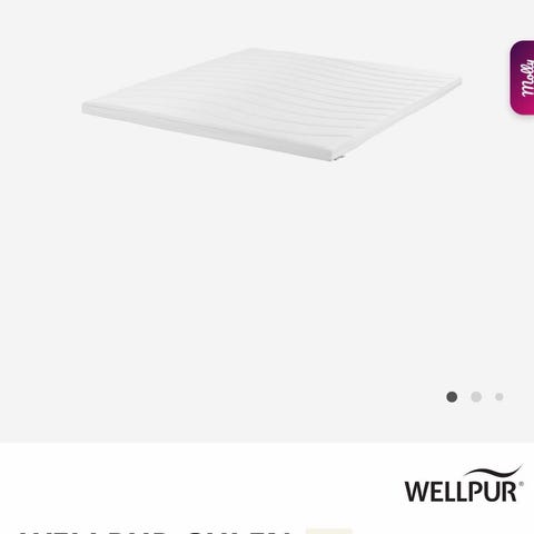 Wellpur Gulen grå, 8 cm høj, 180x210 cm, memory skum, kun brugt 3 måneder og altid med rullemadras ovenpå.